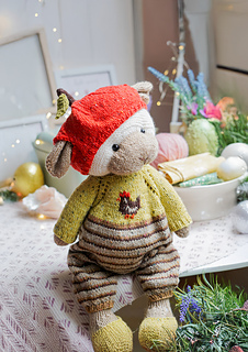The toy and the outfit are knitted using 3mm knitting needles (either two single-pointed needles or circular needles with a cord, working in rows).