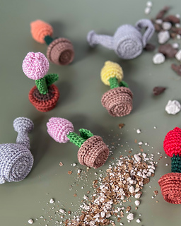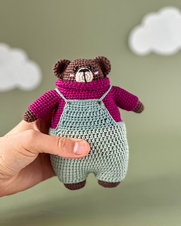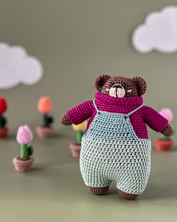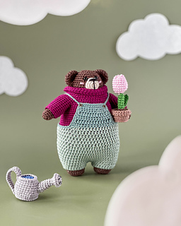 This low-sew crochet pattern contains a detailed description with step-by-step photos that will help you make your own Barry the Gardener Bear amigurumi, his watering can and a potted plant. This is the perfect pattern for all spring and bear lovers.