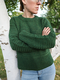 The most basic piece in the Heritage Collection, the Basal Pullover crochet sweater features clean lines, subtle texture, and a relaxed + boxy fit. The fold-over collar and ultra wide ribbed cuffs and bottom hem give this classic sweater a modern finish.