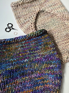 The Basalt Bandana Cowl pattern comes with instructions to make a quick and simple neck warmer with less than one skein of super bulky yarn like Malabrigo Rasta.