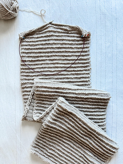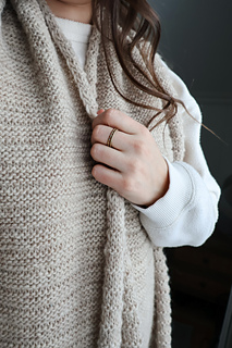 The Baseline Scarf is knit flat, worked back and forth in rows from end to end. A simple, easy-to-memorize repeat creates clean, textured stripes that add visual interest without complexity. The straightforward construction makes this scarf an enjoyable, rhythmic knit—perfect for relaxed stitching and timeless wear.