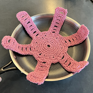 Use your Red Heart Super Saver Crafties. You can make several of these. Keep in mind that these are not pot holders and are not to be used for hot surfaces as it’s acrylic yarn. These are meant to keep your pots and pans from scratching each other during storage.