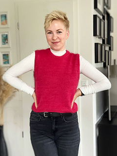 Die Anleitung, die du hier kaufen kannst, ist identisch mit den Projektnotizen. Es handelt sich um ein übersichtlich gestaltetes PDF mit Fotos (7 Seiten). Die Anleitung enthält keine Grundanleitungen zum Anschlagen von Maschen oder italienischem Abketten und nur eine Einheitsgröße S/M. Mit etwas Strickerfahrung kannst du den Slipover aber leicht an deine eigenen Körpermaße anpassen und damit größer oder kleiner stricken.