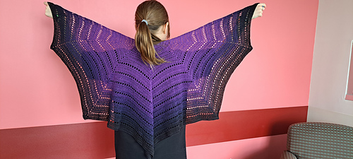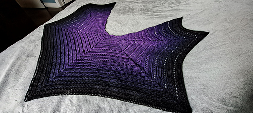 When I saw this purple to black fade of Sultan Shadow, I knew I needed to make a bat wing shawl. This shawl would make a great addition to any wardrobe, especially for anyone who loves Halloween. It only takes one skein if you use Sultan Shadow, but you could continue on and make it even bigger if you want to.
