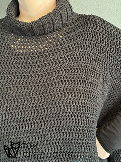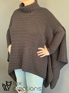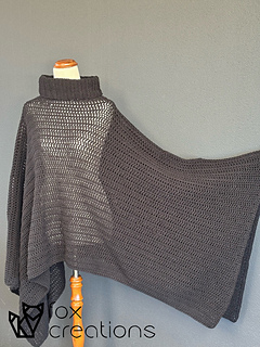 The Bat Wings Poncho is here to make all your goth dreams come true! The pattern uses basic crochet stitches and has no seaming – everything is crocheted directly into the garment. We have used a DK cotton-acrylic blend for a soft fabric that will suit temps from Autumn to Spring. The pattern is one-size, includes schematics with measurements, as well as notes on how to adjust the sizing. The model is 5’5” and mid-sized. The finished poncho is approx. 183cm wide and 66cm long.