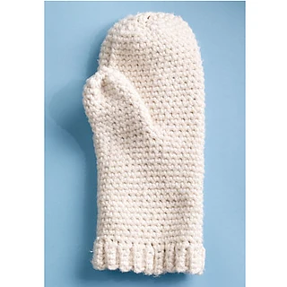 Work cuff with smaller hook (flat). Finish mitt working in rounds.