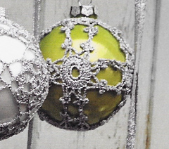 Instructions and charts for crocheted ball ornament cover on pages 24-26.