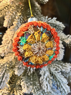 Our only crochet bauble, today’s design is constructed in two pieces. The pieces are then crocheted together around the ornament.