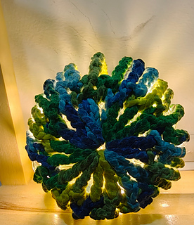 Add Fairy lights to give a nice warm glow or use metallic yarn to get a festive looking bauble!