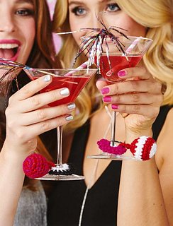 ‣ Caron Simply Soft Party; 1 ball of each: Black Sparkle (0007), Snow Sparkle (0001), Fuchsia Sparkle (0002) and Red Sparkle (0015)