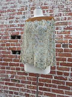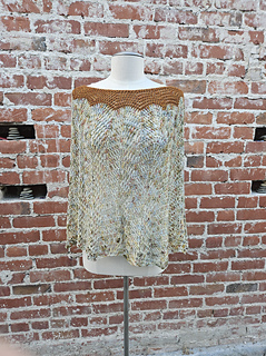 This openwork poncho is great over your favorite dress or a tank and jeans. Solid and tonal colors will match up against fun patterns. Your favorite variegated yarn will pop over a black dress. The contrasting neckline made from a coordinating mini skein or some leftovers in your stash, provides a little structure and fun. Have fun pairing colors.