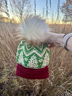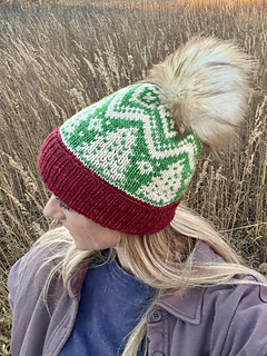 This worsted weight ‘Be Merry Beanie’ uses three colors of yarn to create a festive colorwork design that is perfect for the holiday season. I have included written instructions for both the brim and decrease sections and a chart for the main fair isle portion. When choosing colors, I suggest using high contrasting colors to really show off the trees and ornaments.