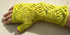 Winter warmers with an eyelet/cable pattern wandering up the back of the hand.