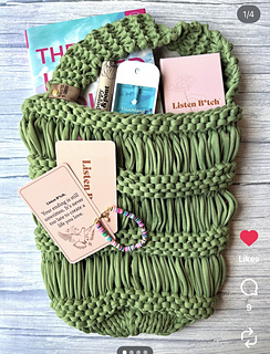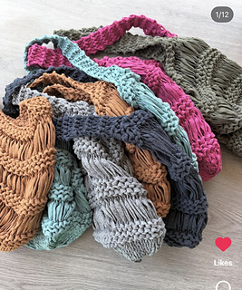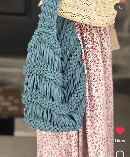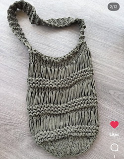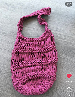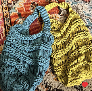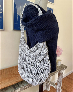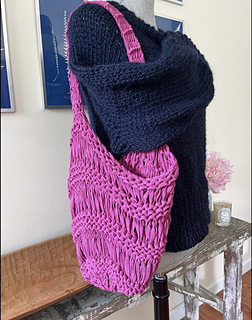 This pattern knits up quickly with tape yarn and large needles so you’ll be ready to take this bag with you in no time! The original prototype made it through two full days of the Dutchess County Fair in Rhinebeck, a major garage sale haul, a trip to the farmer’s market, AND a day at the beach. It was stretchy and comfy and held a ton, and didn’t drag down to my knees when it was full, so I knew it was a keeper.