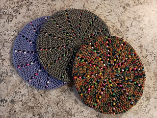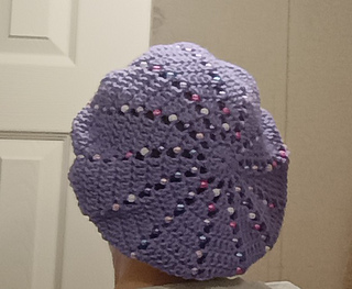 This is a very simple pattern that uses pony beads for accent. The hat is a basic circle pattern. You do not have to thread all of your beads onto the yarn prior to stitching! Easy method of adding beads.