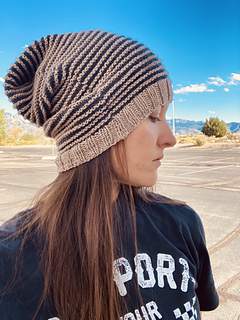 The construction of this beanie is knitted flat. The sides are then stitched together using the mattress stitch. The crown of the beanie is created by sewing the inside corners together from the inside of the beanie.