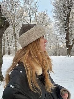 The model in the picture is made using Teddy Dear colour 104, Light Beige and Eco Cashmere Vintage in col. 110, Nougat. The model’s head circumference is 56 cm 22 inches and she is wearing size S/M.