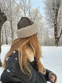 The lower part of the beanie is worked with one strand of Teddy Dear. The upper part of the beanie is worked with two strands held together. Choose between two strands of Woolia, two strands of Pura Lana or two strands of Eco Cashmere Vintage.