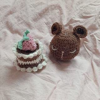 Pattern for Cute Bear Head and Cake with Topping and strawberry suitable for keychain