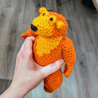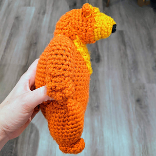 Supplies needed: Dark orange, light orange, and black worsted weight yarn, poly-fil, 5mm safety eyes, Size H hook, upholstery needle