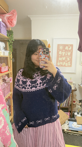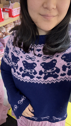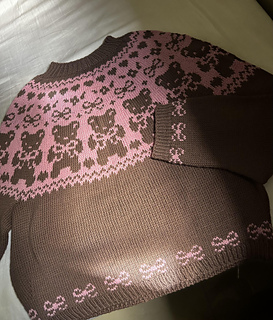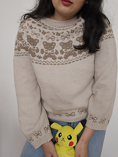 The Beary Cute Sweater was created to celebrate softness, playfulness, and the joy of making something purely because it makes you smile. Inspired by childhood nostalgia, this design combines whimsical motifs with a relaxed, wearable fit.