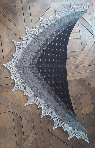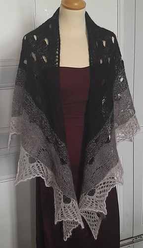 This shawl was designed in a season of grief and distance. The design explores intentional openness - holes, gaps, negative space.