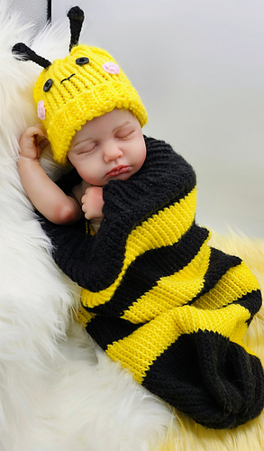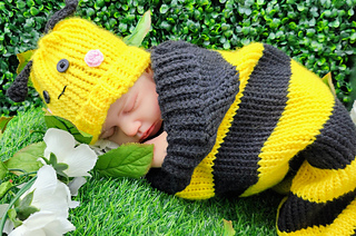 This is a beginner-friendly loom-knit Baby Bee Cocoon pattern that requires minimal crocheting and sewing. When you download the pattern, you will receive the baby bee hat and cocoon pattern.