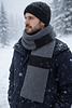 This big, thick, and squishy thermal winter scarf for men (or anyone who likes to be warm) is a dense fabric without holes. The thickness measures approximately ¼ inch because of a special stitch used throughout.
