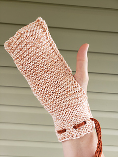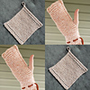 The bath mitten is made flat and sewn together afterwards. It also uses garter stitch, yarn overs and knit two stitches together. It requires around 60m of yarn and an evening of your time.