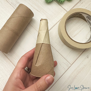 This is a one-row, 42-inch crochet strip designed to wrap around a cone made from a recycled toilet paper roll — making it both eco-friendly and incredibly fun to build!