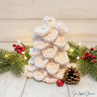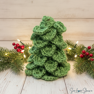 This project is fast, fun, and totally customizable. Choose neutral farmhouse tones, traditional Christmas colors, or whimsical brights. Add sparkle, miniature lights, or keep it simple — the textured fan stitch creates instant dimension and charm.