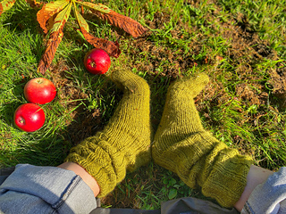 Yarn – worsted weight 200m per 100g yarn (Green socks – 200 metres / 100g