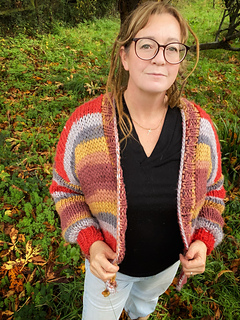 The only stitches you will need to know are knit and purl for this garment, plus knit 2 together for the sleeve cuffs. There is a video tutorial for all of these stitches included in the pattern. This cardigan includes no shaping , and is constructed using just rectangles seamed together.
