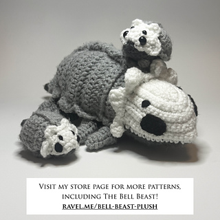 Inspired by Hollow Knight: Silksong by Team Cherry, this pattern brings the Bell Beastlings to life! These adorable baby Bell Beasts are perfect for all Hollow Knight and Silksong fans, as well as all lovers of whimsical creatures, fantasy worlds, and handmade plushies.