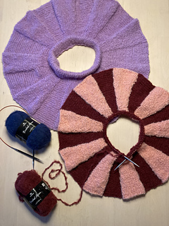 You can easily adjust the pattern to suit different body types by combining length and width from two different sizes. The length is determined by the number of cast-on stitches and the number of short rows, while the width depends on the number of wedges and the number of stitches you pick up for the waistband.