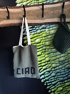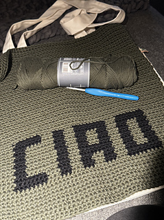 For this pattern I only used single crochet (sc) and chain (ch) only. I made two single crochet squares: one with “Bella” and one with the text “Ciao.”