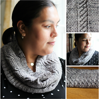 This cowl is a combination of a simple cable and moss stitch repeated every 20 stitches throughout the cowl. If you would like to create a longer cowl you can add an additional 20 stitches to your cast on and repeat the stitch pattern 1 time for every 20 additional stitches cast on.