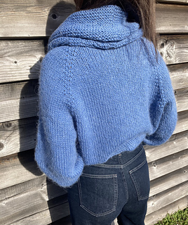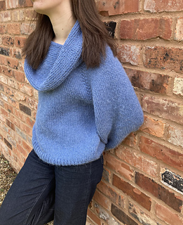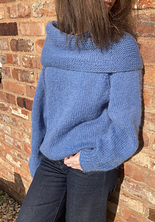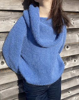 The oversized sweater is knitted in the round top to bottom.