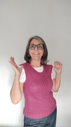 Es un chaleco Bottom up, se teje de abajo arriba. Primero tejemos la parte del cuerpo, a la altura de la sisa separamos el delantero y espalda. Primero tejeremos el delantero, después la espalda, uniremos los hombros con Kitchener y finalmente levantamos puntos para tejer el elástico de las sisas y el cuello.