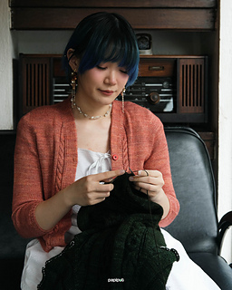 This cardigan uses the European Shoulder construction, which is seamless without short rows. You can modify the length of each part of the cardigan (sleeves and body), and if you want to attach buttons or make it an open-front cardigan.