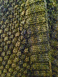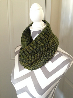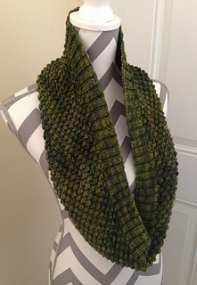 This cowl makes for a fun, beautiful project. The raspberry stitch gives it a bobble texture that goes great with the ribbed collar. Malabrigo Rios in Ivy is the perfect yarn to go with this cowl and uses 1 1/2 to 2 skeins.