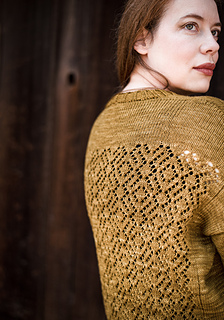For the sample I used Miss Babs Laurel Falls (100% Superwash Shaniko Merino Wool; 300 yards/275 m in 3.5 oz/100 g), Mustard Seed: 4 (4, 4, 5, 5, 5), {6, 6, 7, 7} skeins.