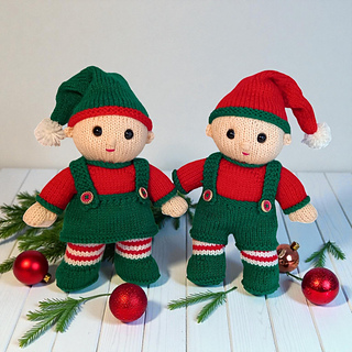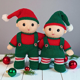 All the clothes are knitted flat from the top down. You’ll just need stitch holders for the sleeves, which you knit after finishing the legs of the Elf suit—nothing too fiddly, I promise!