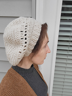 A cute and slouchy hat with an eyelet design, Bevie is a quick and satisfying project!