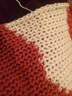 NOTE: I used what I call “stockinette single crochet” for this project. It is the crochet equivalent of alternating rows of knitting and purling, and is best achieved by alternating between left hand and right hand for each row. However, the pattern will work just the same if you crochet standard way, it will just have a different visual texture.