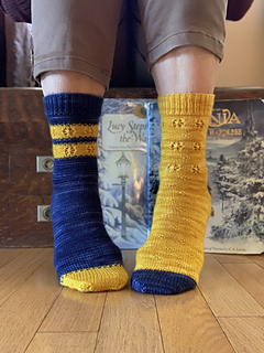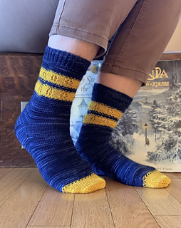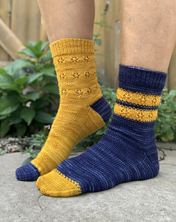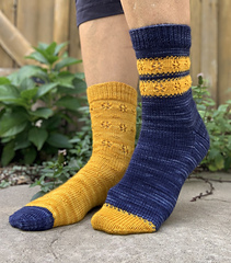 The Winter to Spring version is more textured and can be knit in only one colour, or with contrasting heel and toes as shown in the sample.