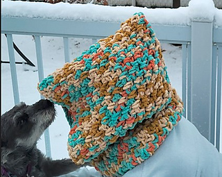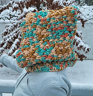 The pattern uses only 1 skein of Bernat Blanket and is very soft.