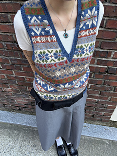 The Big Dipper Vest is a classic colorwork vest inspired by the night sky’s Big Dipper constellation.