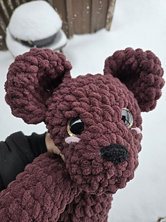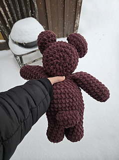 Big earred teddy bear is in US terminology. Its also a low sew pattern (head to body, ears to head, tail to body). The arms and legs are crochet directly into the body. It has been tested in different yarn types and weight and they were all successful.