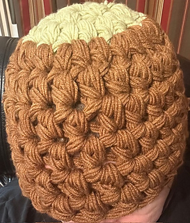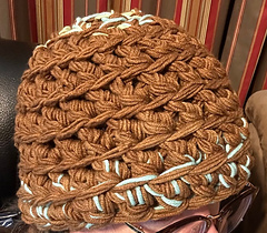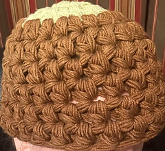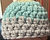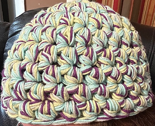 This is a quick and easy bulky beanie. I used six strands of worsted weight yarn (#4) held together with a 15 mm (P/Q) hook but you could use a super-bulky yarn.